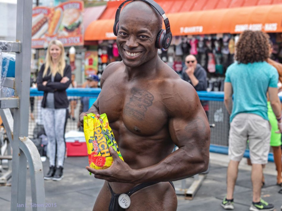 United States Marine Corp Gunny Sergent Jaren Wright practicing advanced food science supplementation prior to getting on stage at Muscle Beach/Venice yesterday LOL. Don’t be fooled, he went home with two trophies!