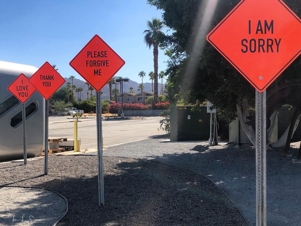 This entry was posted on October 28, 2020 by Ian L. Sitren. It was filed under Uncategorized and was tagged with El Paseo, Palm Desert, signs of love, street art, street photography, street signs, warning signs.
