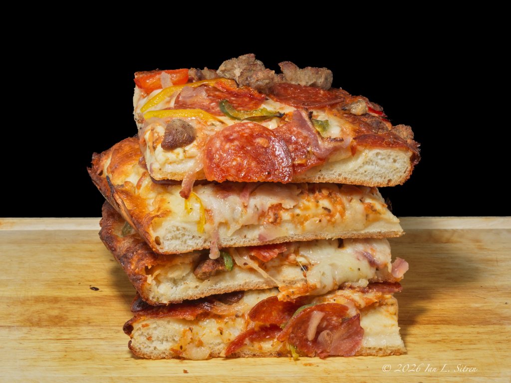 This entry was posted on April 5, 2026 by Ian L. Sitren. It was filed under Uncategorized and was tagged with American food, Chicago style pizza, comfort food, commercial food, convenience food, deep dish pizza, Food Photography, frozen pizza, pepperoni pizza, pizza slices, sausage pizza, stacked food, Tags National Deep Dish Pizza Day.