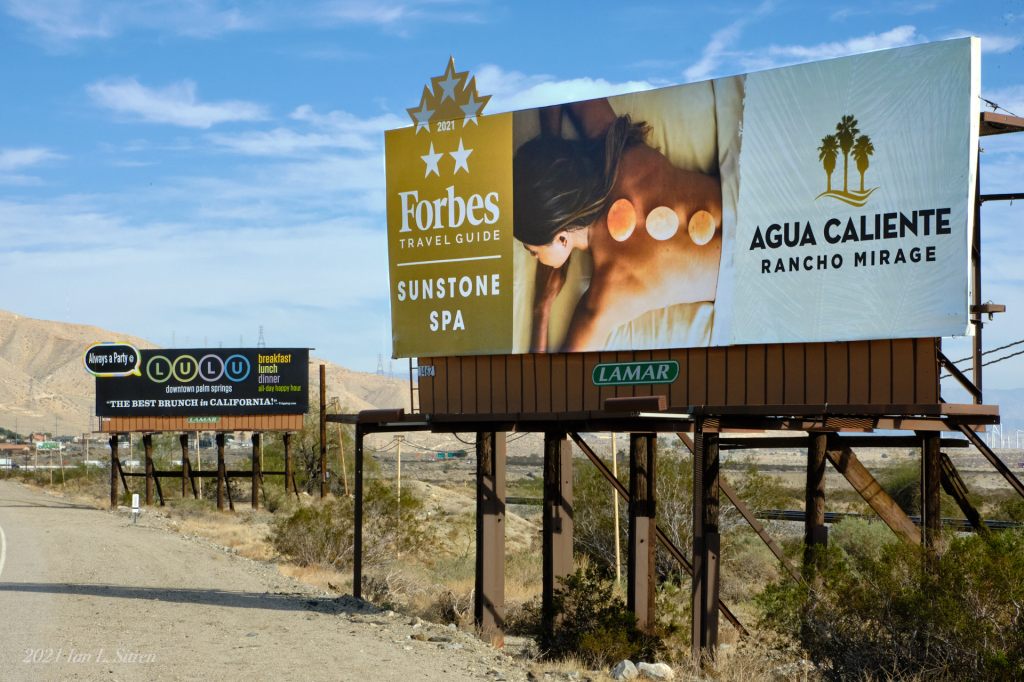 Somehow when you see the billboards in their entirety and location, it negates the message. On the frontage road along the 10 Freeway near Cabazon on the way to Palm Springs.