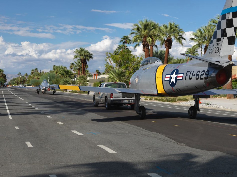The Flying Aviation Expo comes to a close for this year. The airplanes on display at the Palm Springs Convention Center taxi back to the airport and planes from the Palm Springs Air Museum head on home. So very fun to see them under power cruising down the street!
