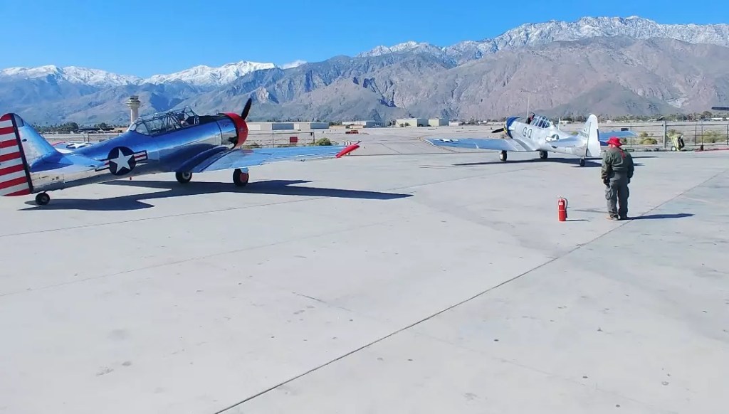 The other morning I sent 2 T-6 Texans out for an event flyover from the Palm Springs Air Museum. Photo from my buddy Bob Saxon.