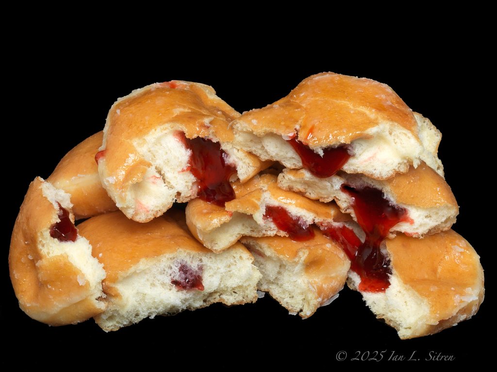 For the occasion, I photographed an assortment of Krispy Kreme donuts—stacked and unstyled, just as they came out of the box. Glazed, chocolate frosted, pink with rainbow sprinkles, maple, cinnamon sugar, and a few others. No tricks or props, just donuts on a black background.