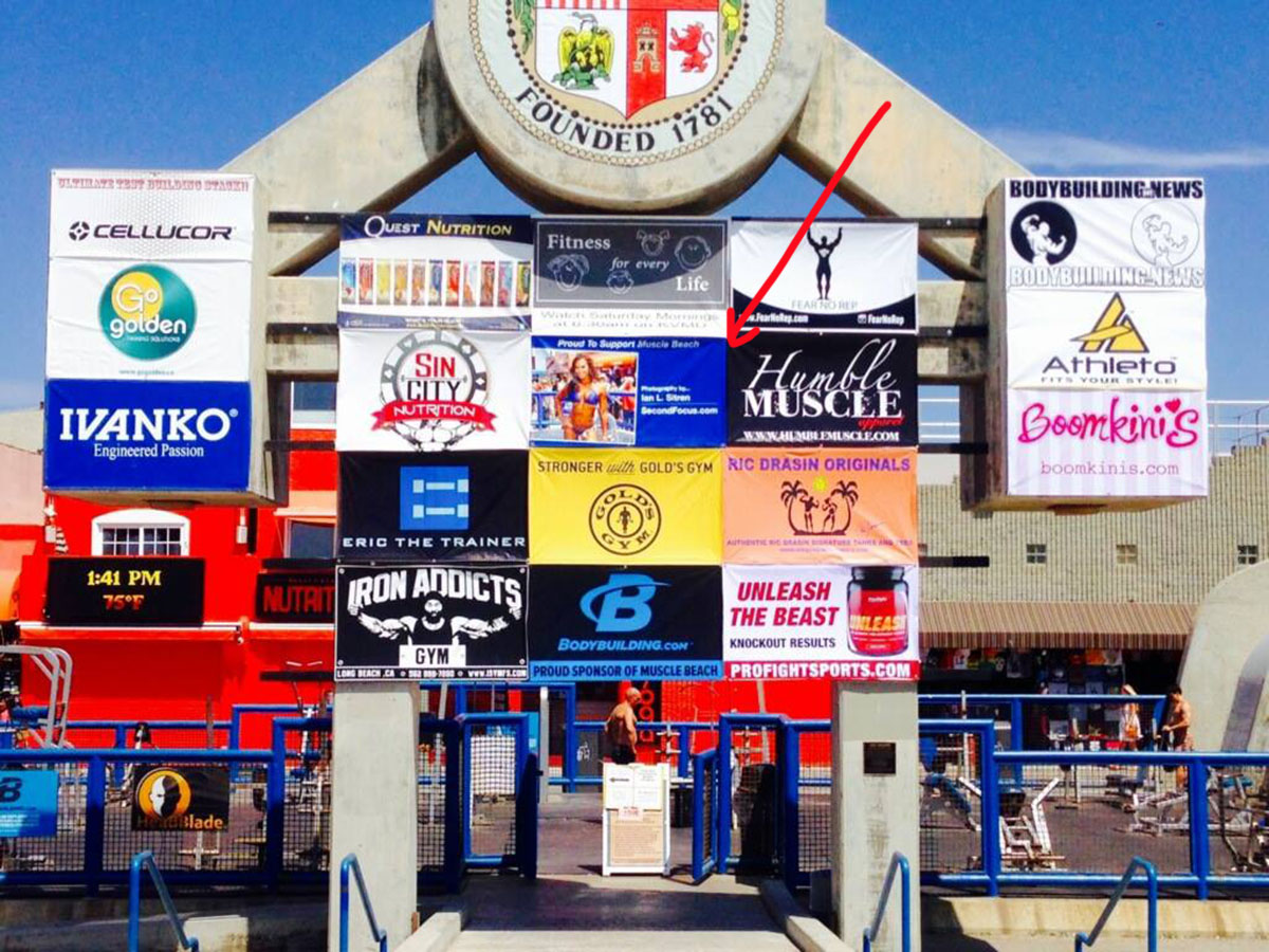 It is time and I am front and center! Proud To Support Muscle Beach, my banner hanging over that world famous place “Where Muscles Were Born”. I will be shooting the photographs at the big show on Monday Labor Day. If you want your photographs doing the show and back stage in the workout “Pit” you have to sign up. I also have one time slot left for your own personal mini photo shoot on Sunday for you or a couple. For more information and to sign up go to https://squareup.com/market/secondfocus and Thanks! See you there!