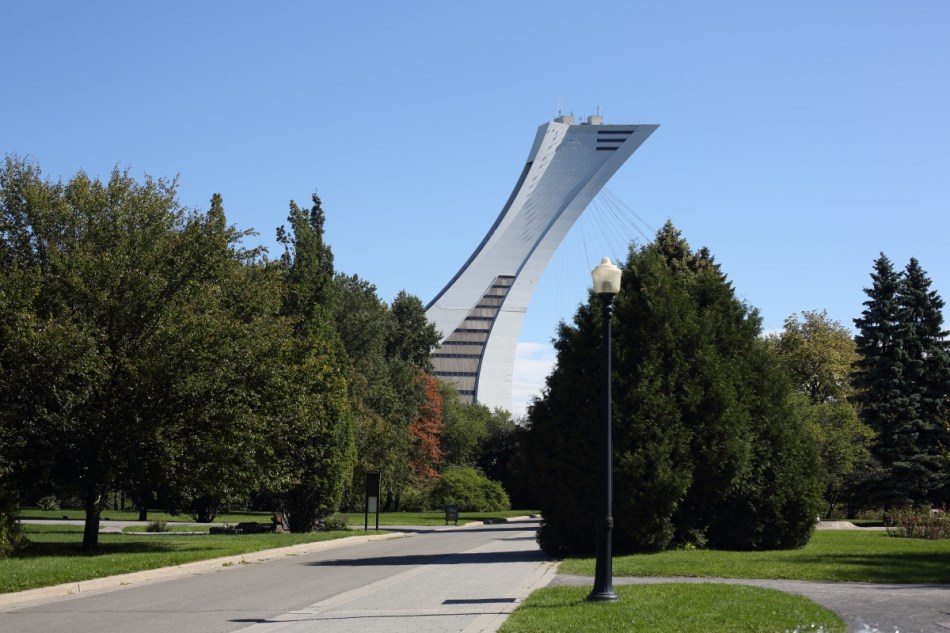 The Olympic Stadium above the Botanical Gardens in Montreal in Canada.