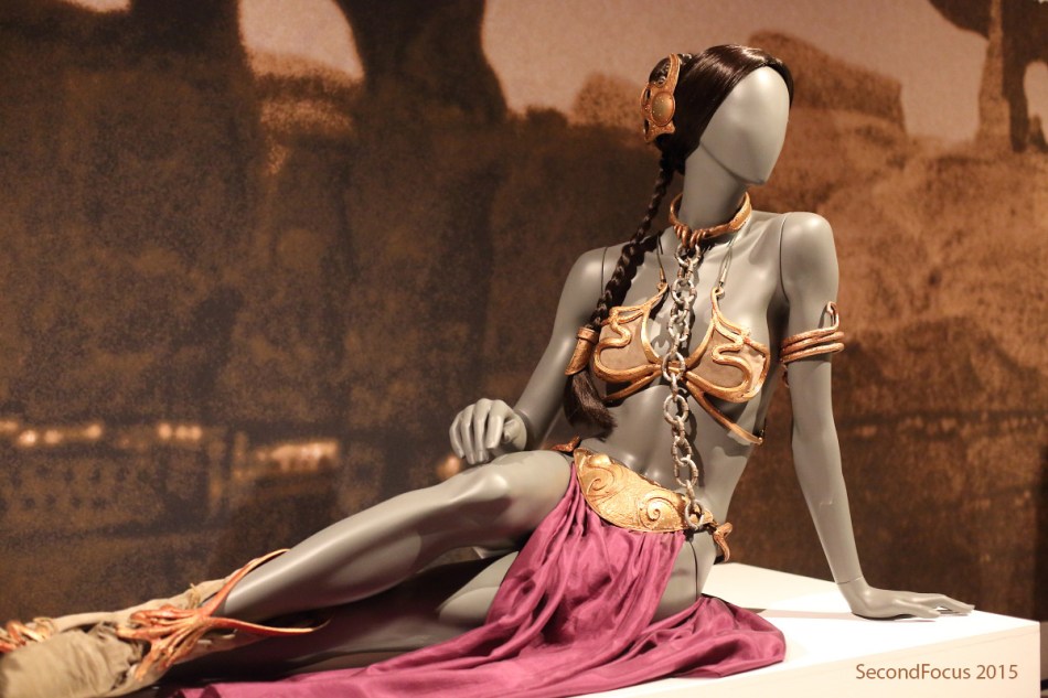 I am in Seattle working on my skills photographing women in very brief costumes before I get out to Muscle Beach/Venice this weekend. This is the Slave Leia costume which is the bikini-style outfit worn by Princess Leia when she was captured by Jabba the Hutt in “Star Wars: Return of the Jedi”. The costume was worn by actress Carrie Fisher. On display with an amazing display of Star Wars costumes at the EMP Museum. The craftsmanship and work that went into these costumes is just breathtaking.