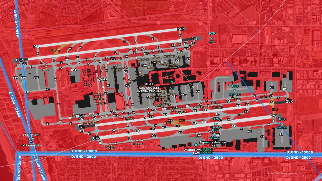 Just minutes ago, Air Force One departed Los Angeles International Airport (LAX), as seen here on ForeFlight. The aircraft is visible in the upper-right center of the screen, departing from runway 6 right. January 8, 2025