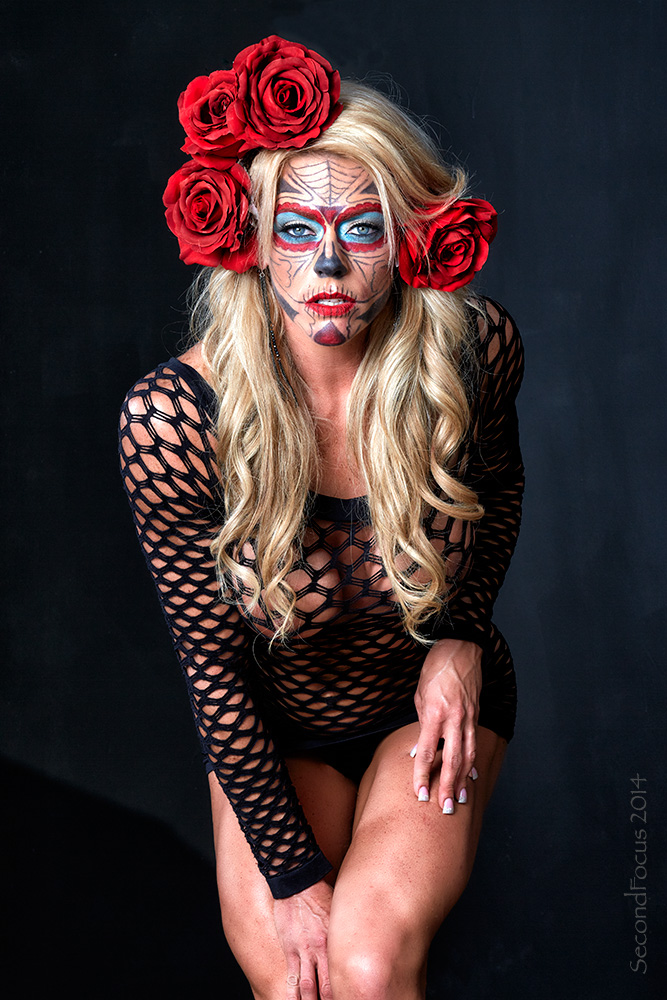For the first day of Día de Muertos, Day Of The Dead, All Hallow’s Eve, Halloween with Natalie Lyle. An all new meaning to “Trick Or Treat” I would say! The Makeup and Hair Styling by Natalie herself as well as building that body. From our photo shoot, Just WOW!