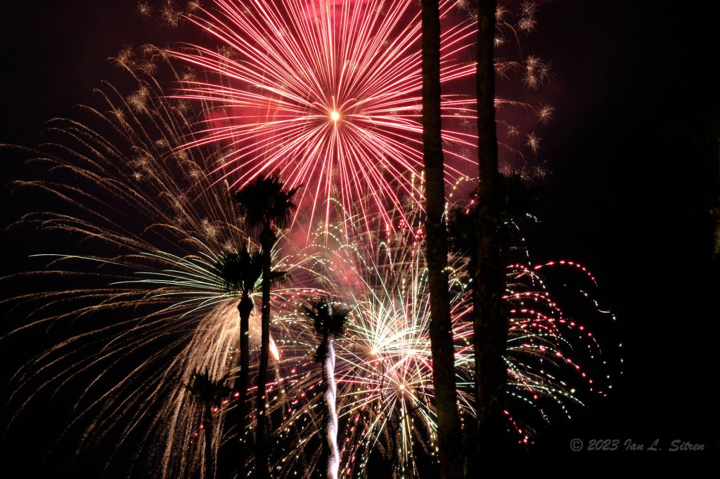 Fireworks through the Palm Trees last night July 4th 2023. Palm Springs California.