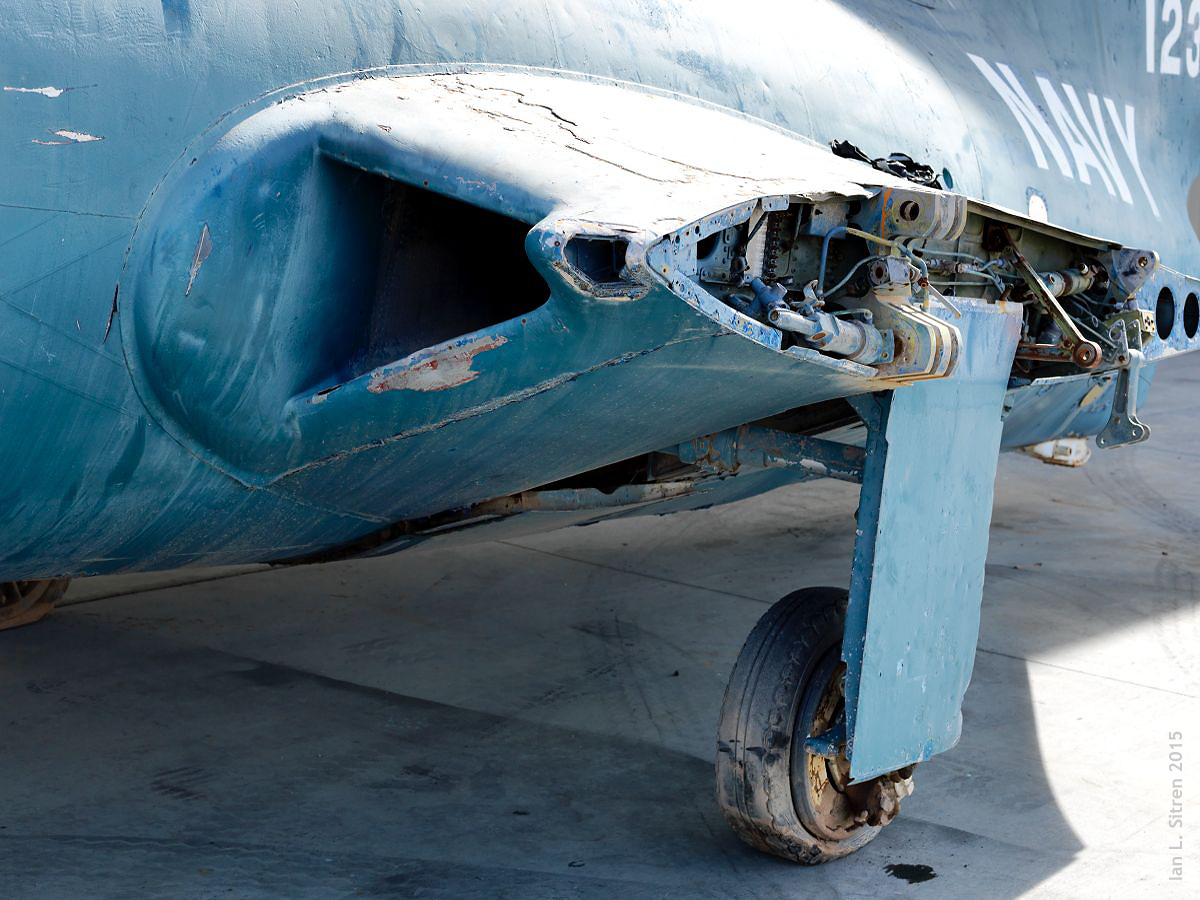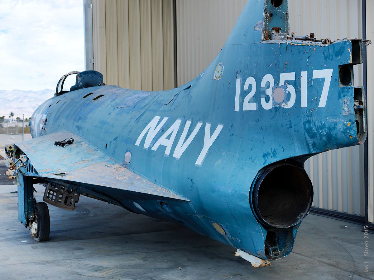 Just top it off with a quart of oil and good to go! Ok maybe not. Just brought in to the Palm Springs Air Museum yesterday morning. This is a Grumman F9F Panther. The Panther was the U.S. Navy’s first successful carrier based jet aircraft. It was also the aircraft of the Blue Angels from 1949 – 1954. There were 1,382 built and today it is a very rare aircraft. It will go through extensive renovation at the Air Museum and before too will be on display looking like the day it came off the assembly line.