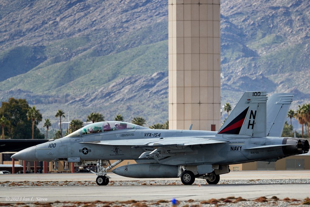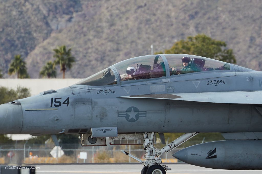 Out of town visitors to Palm Springs last Friday. F/A-18F Super Hornets from VFA-154, the Black Knights from Naval Air Station Lemoore. Attached to Carrier Air Wing Eleven and deployed aboard the aircraft carrier USS Theodore Roosevelt.