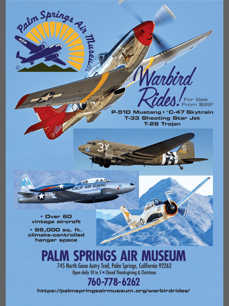 Always great seeing my photographs in print. An ongoing monthly ad in Air Classics Magazine for the Palm Springs Air Museum.