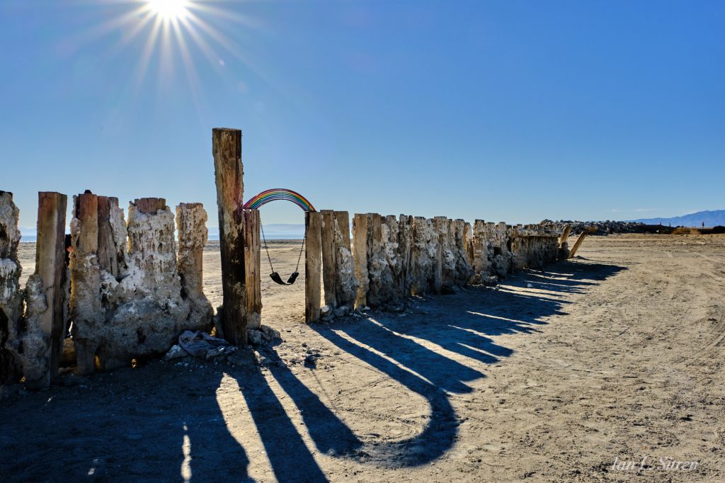 Ski Inn II, an art installation at Bombay Beach on the Salton Sea. The real Ski Inn, bar and restaurant, in Bombay Beach is 223 feet below sea level making it the lowest bar in the western hemisphere. A real throwback to the 1950’s it has been featured by Anthony Bourdain and John Waters. Photographed at sunset.