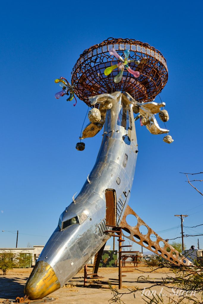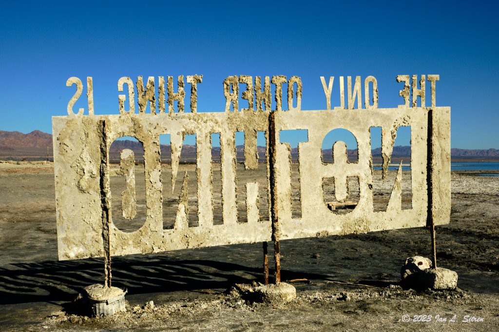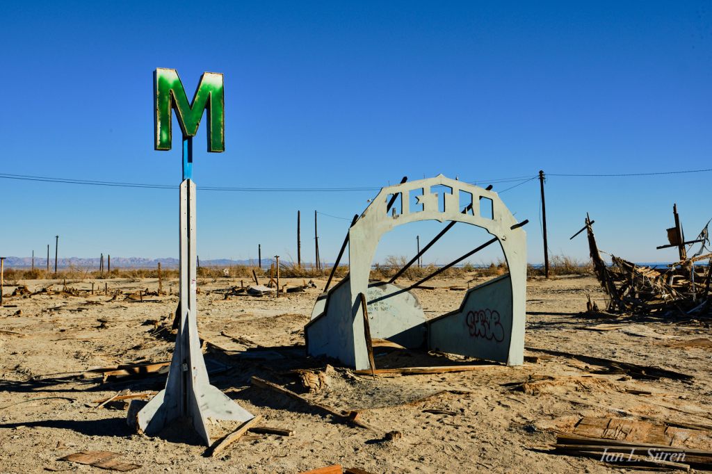 The Salton Sea is 15 miles wide and 35 miles long. With so much shoreline and interesting places, there is always something wonderful to photograph. By example I happened to find this random model on a pole at an abandoned gas station and store.