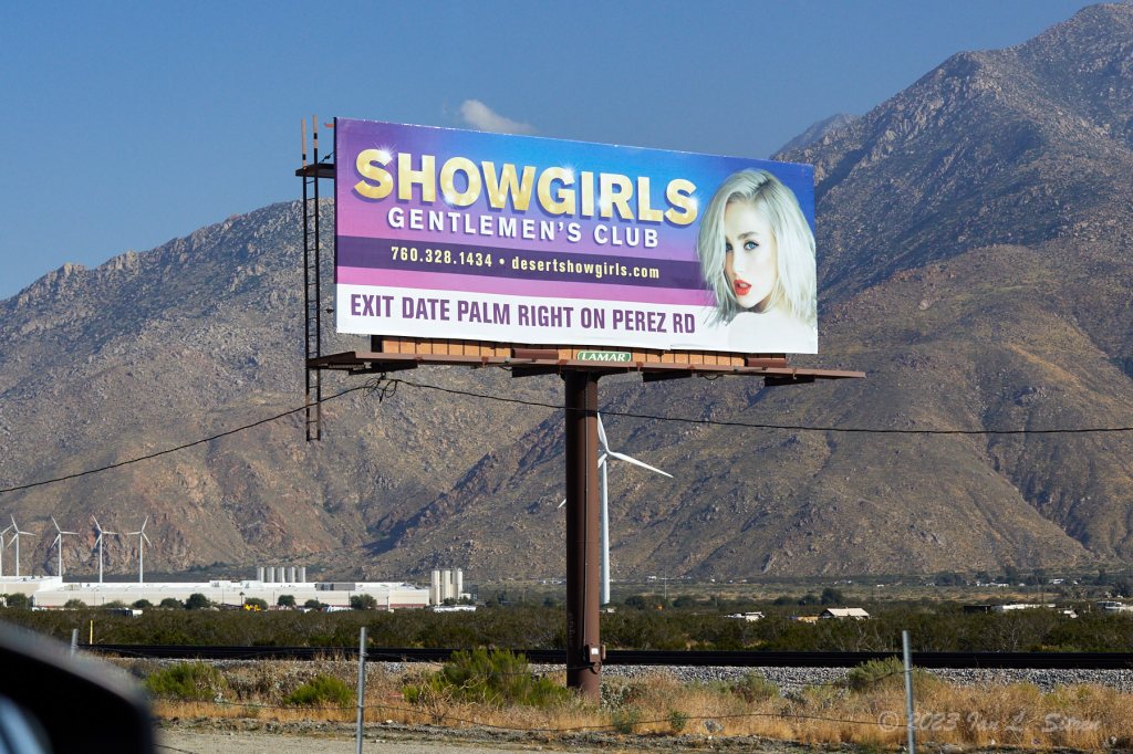 Easy to read at freeway speeds. Clear what it is about and where it is. There is an advertising lesson there. Eastbound along the Interstate 10 freeway between Cabazon and Palm Springs California.