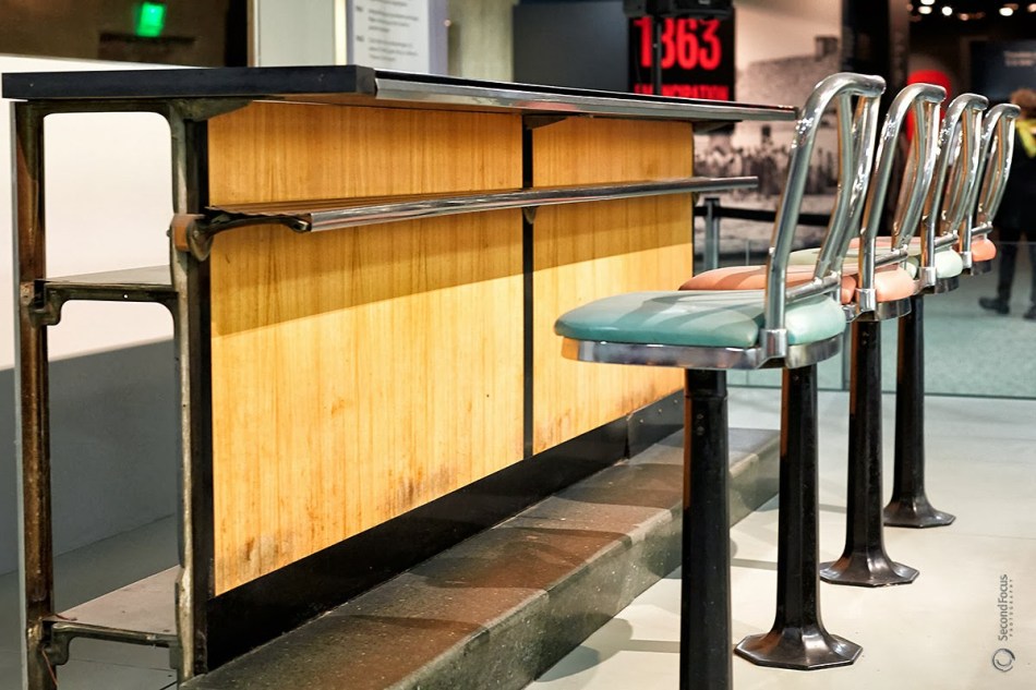 My photograph here… So ordinary but yet so very profound in the history of this country and in all humanity… A section of the lunch counter from Woolworth’s in Greensboro, North Carolina that became pivotal in the protests against racial discrimination on Feb. 1, 1960. A non-violent protest by four very brave students, five months later the entire Woolworth’s chain was desegregated, serving blacks and whites alike.